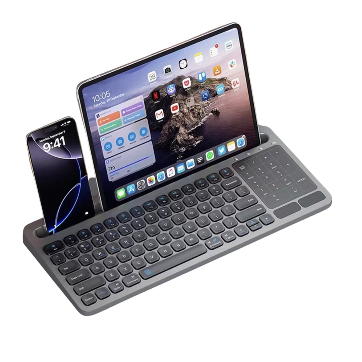 Adaptive control. Streamlined design. Smart versatility. The Flexora keyboard features a unique dual-mode numeric pad that transforms into a precision touch mouse, offering seamless flexibility for modern workflows. With Bluetooth connectivity, quiet keys, and a rechargeable battery, it’s built for professionals who value space-saving innovation and responsive control. Whether you’re crunching numbers or navigating content, Flexora adapts instantly — perfect for minimalist setups, mobile workstations, and hybrid environments.